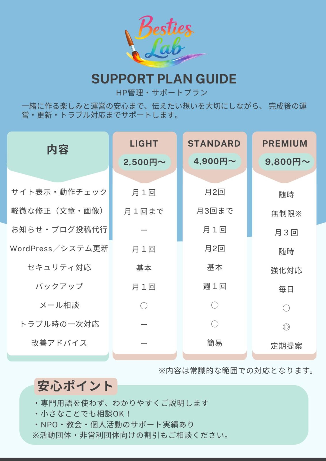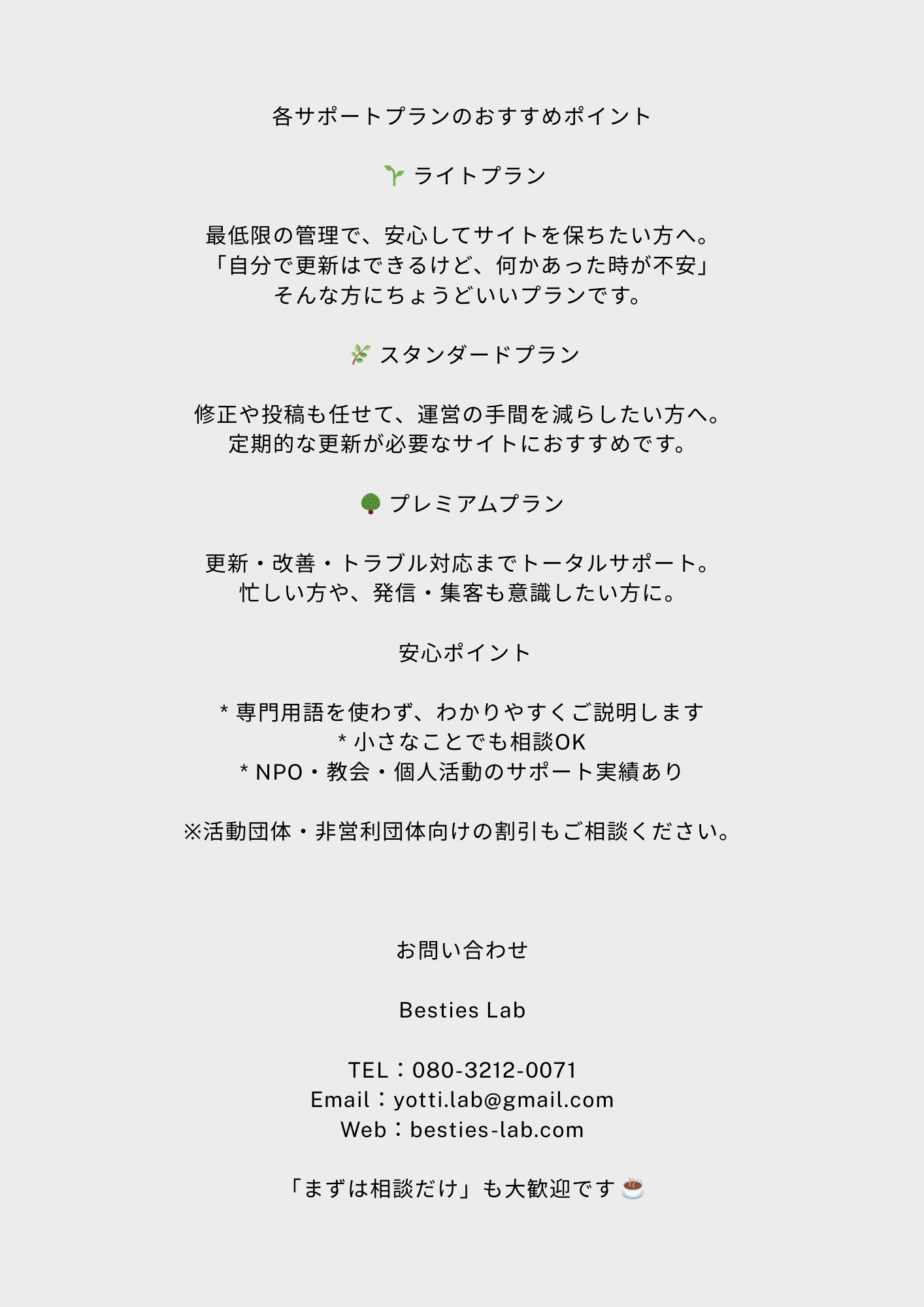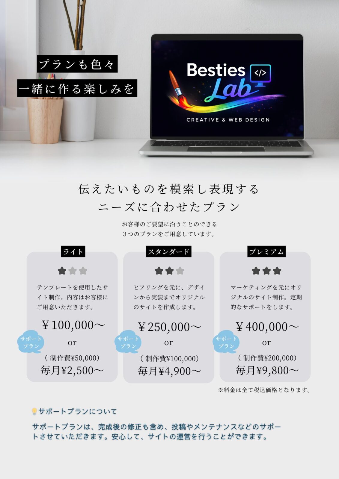 3つのプランであなたに合わせたプランでお作りします